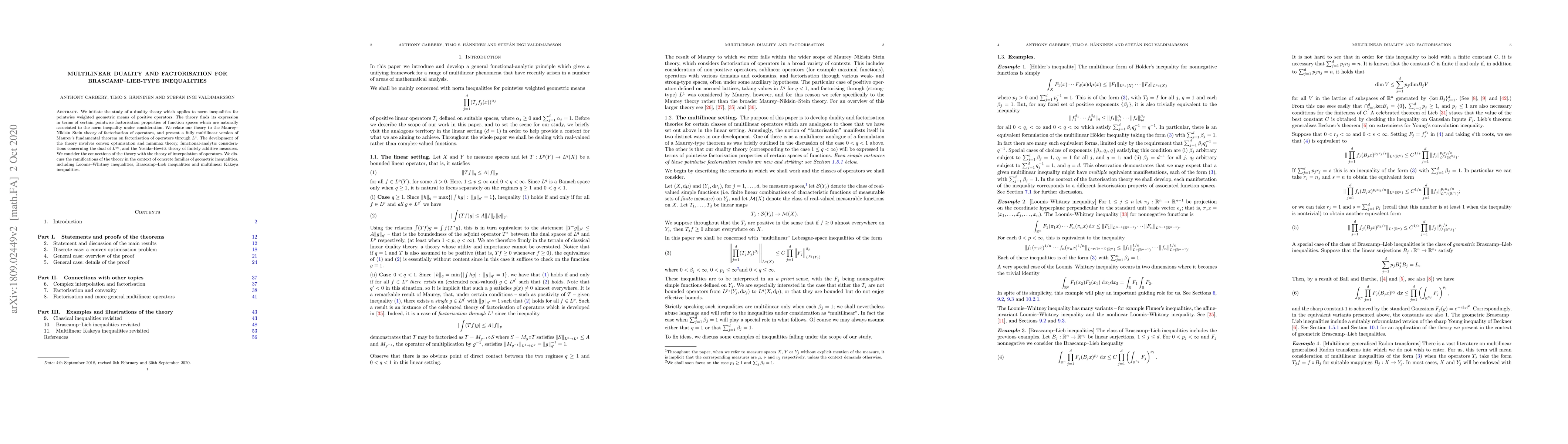 We initiate the study of a duality theory which applies to norm inequalities for pointwise weighted geometric means of positive operators. The theory finds its expression in terms of certain pointwise factorisation properties of function spaces which are naturally associated to the norm inequality under consideration. We relate our theory to the Maurey-Nikisin-Stein theory of factorisation of operators, and present a fully multilinear version of Maurey's fundamental theorem on factorisation of operators through $L^1$. The development of the theory involves convex optimisation and minimax theory, functional-analytic considerations concerning the dual of $L^\infty$, and the Yosida-Hewitt theory of finitely additive measures. We consider the connections of the theory with the theory of interpolation of operators. We discuss the ramifications of the theory in the context of concrete families of geometric inequalities, including Loomis-Whitney inequalities, Brascamp-Lieb inequalities and multilinear Kakeya inequalities.