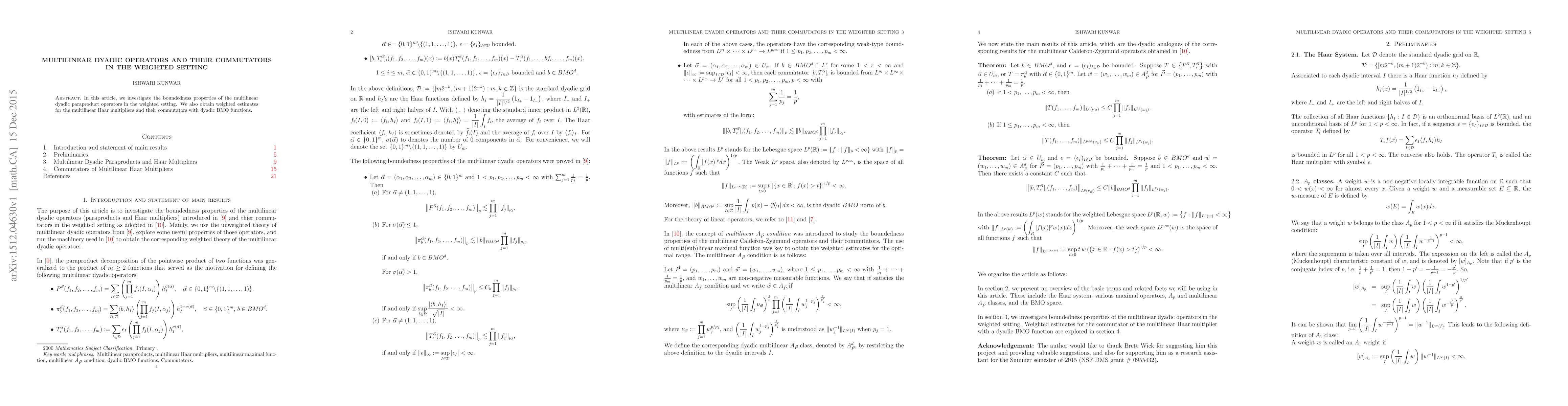 Summary: This paper studies the boundedness of multilinear dyadic paraproduct operators in weighted settings and provides weighted estimates for multilinear Haar multipliers and their commutators with dyadic BMO functions.