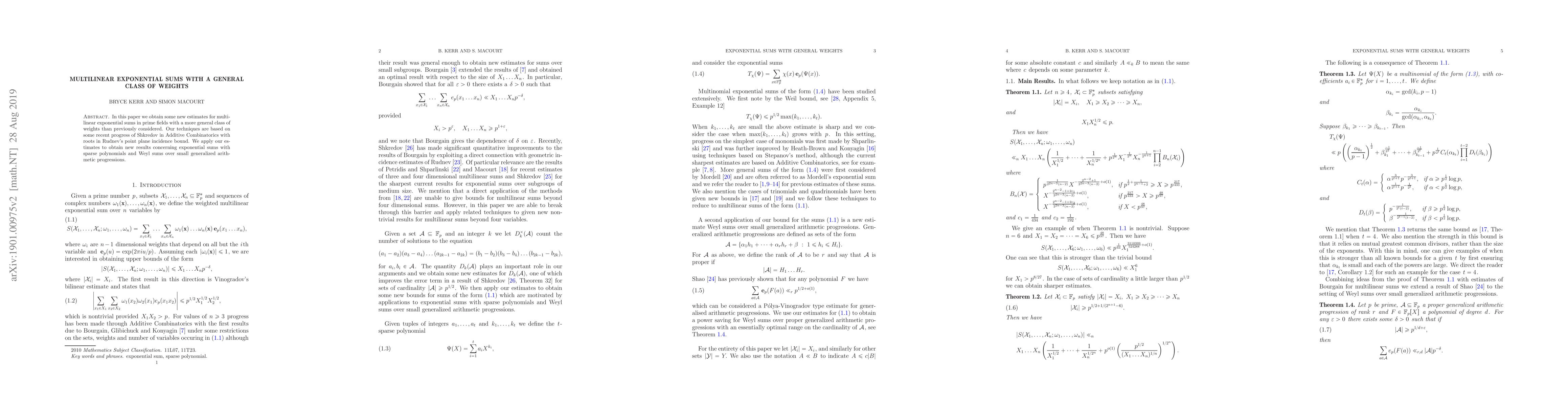 This paper presents new estimates for multilinear exponential sums in prime fields using a broader class of weights, leveraging recent advancements by Shkredov and building on Rudnev's incidence bound. The results are applied to derive new findings on exponential sums with sparse polynomials and Weyl sums over small generalized arithmetic progressions.
