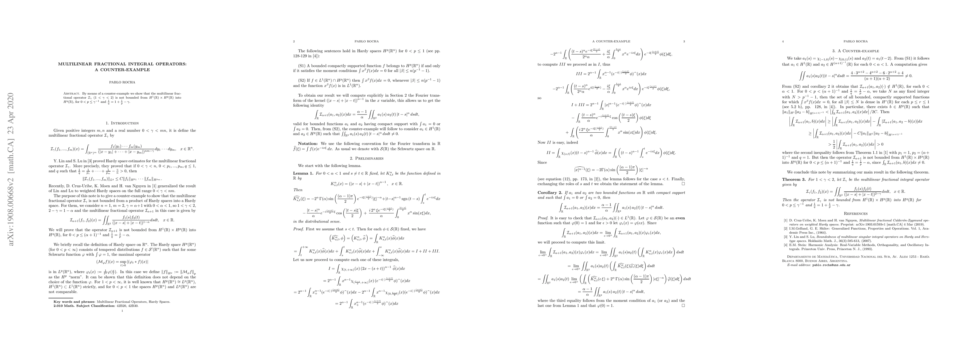 By means of a counter-example we show that the multilinear fractional operator is not bounded from a product of Hardy spaces into a Hardy space.