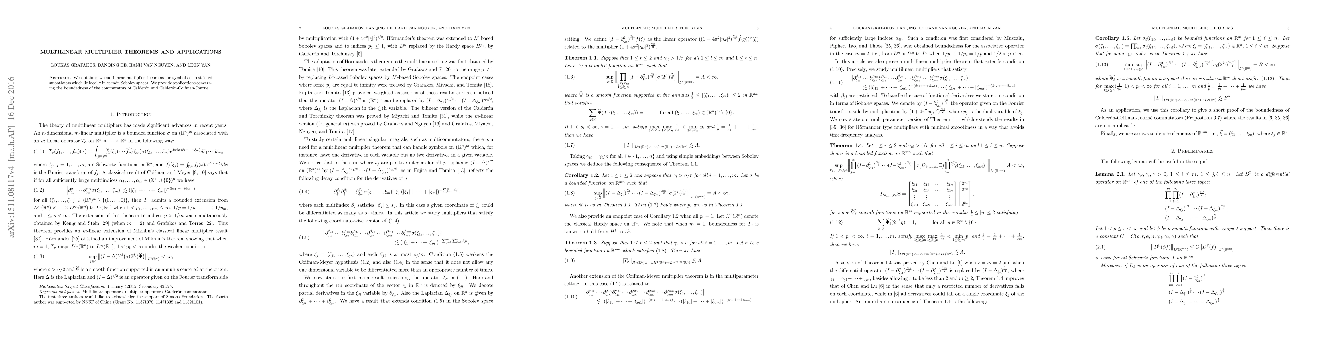 The paper presents novel multilinear multiplier theorems with symbols in Sobolev spaces, extending previous work on linear multiplier theorems.