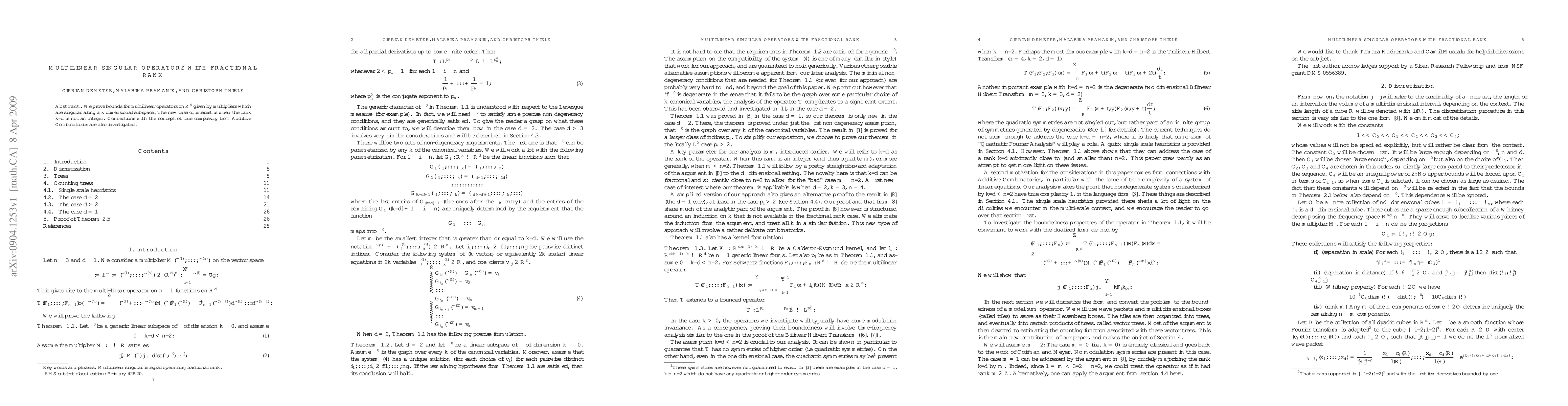 We prove bounds for multilinear operators on $\R^d$ given by multipliers which are singular along a $k$ dimensional subspace. The new case of interest is when the rank $k/d$ is not an integer. Connections with the concept of {\em true complexity} from Additive Combinatorics are also investigated.