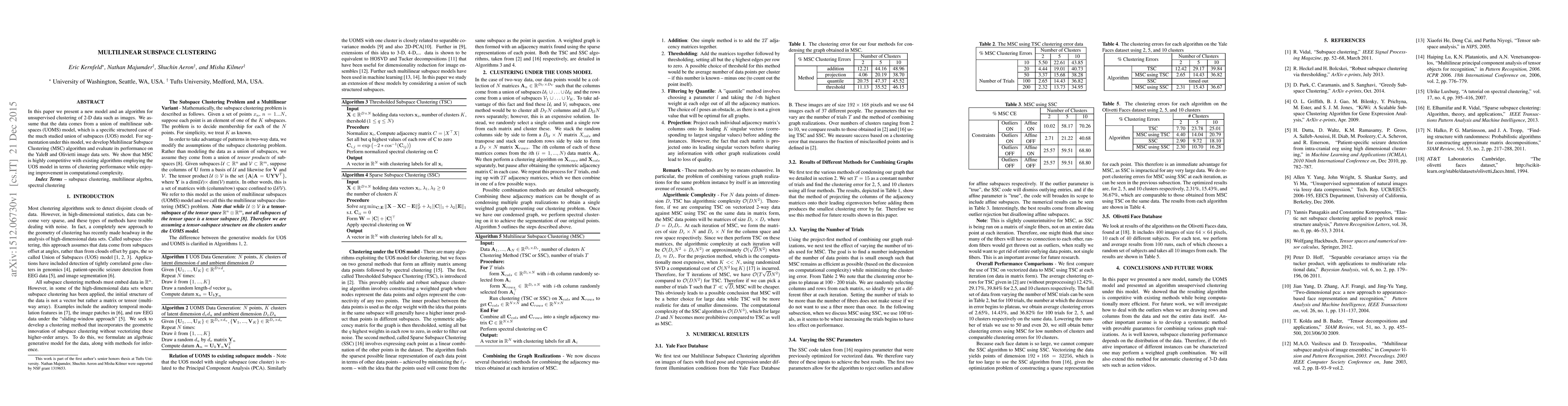 This paper introduces a new Multilinear Subspace Clustering (MSC) algorithm for unsupervised clustering of 2-D data like images, assuming data follows a union of multilinear subspaces model. The MSC algorithm is shown to be competitive with existing union of subspaces methods in performance while offering better computational efficiency.