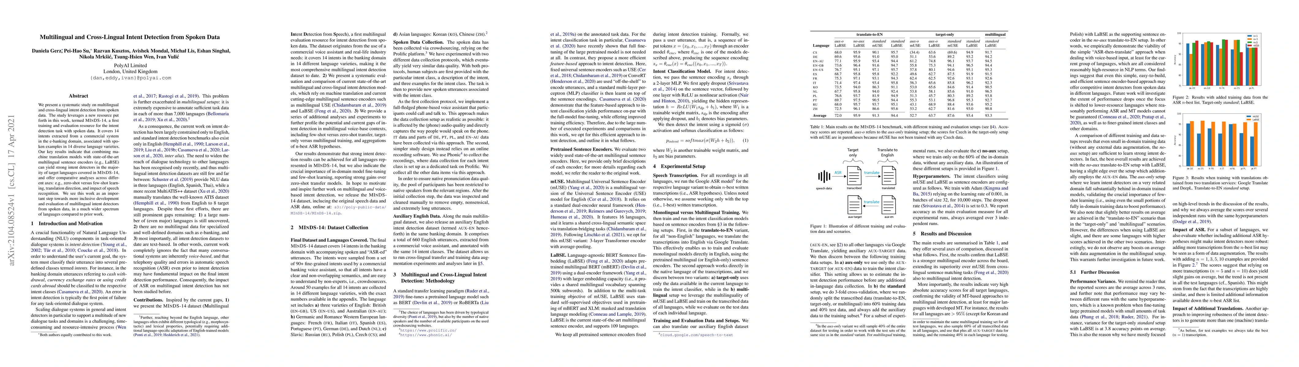This study introduces MInDS-14, a new resource for multilingual intent detection from spoken data, and evaluates the effectiveness of combining machine translation with multilingual sentence encoders. The results show promising performance across diverse languages, highlighting the potential for more inclusive development of such detectors.