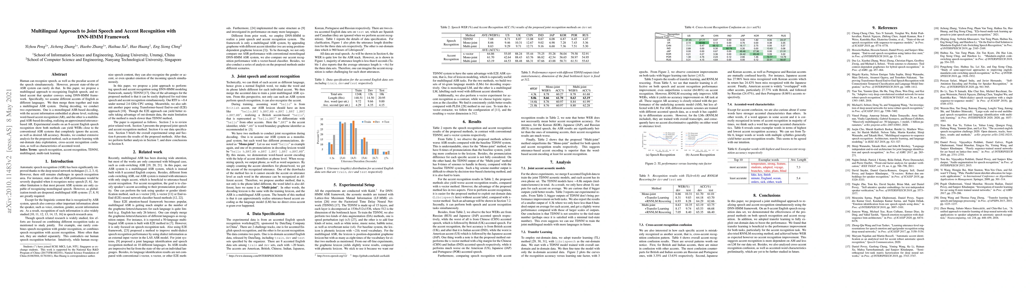 This paper proposes a multilingual DNN-HMM framework for joint speech and accent recognition, treating different English accents as separate languages. Experimental results show both word-based and utterance-based accent recognition methods achieve comparable accuracy to conventional ASR systems while also recognizing accents.