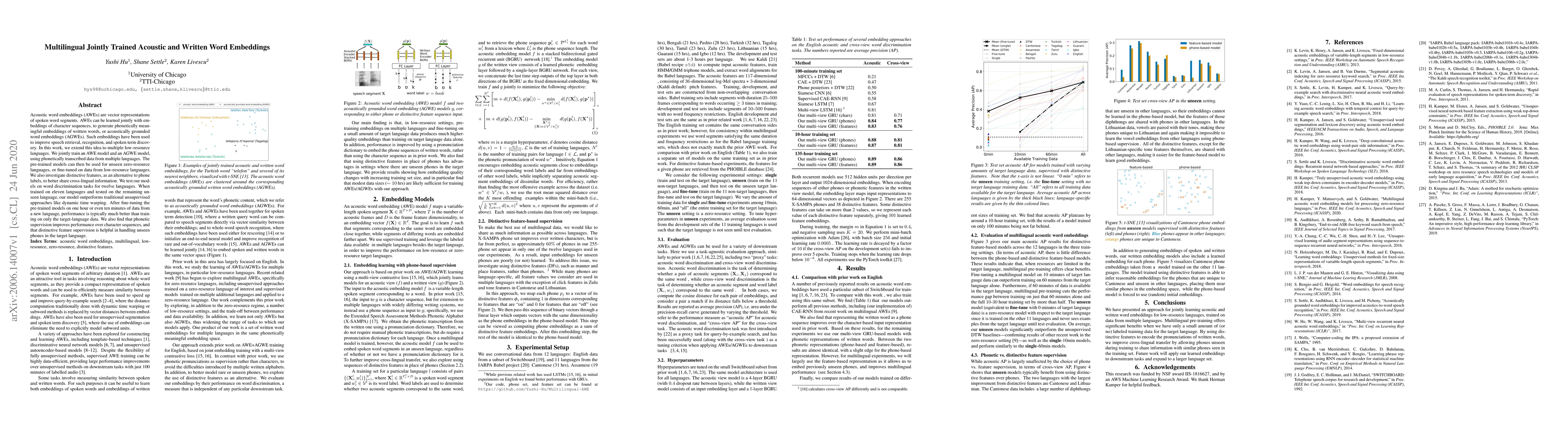 This research paper presents a method for jointly training acoustic word embeddings (AWEs) and acoustically grounded word embeddings (AGWEs) across multiple low-resource languages, improving performance in speech tasks. It demonstrates superior results over traditional methods, especially after fine-tuning with minimal target-language data.