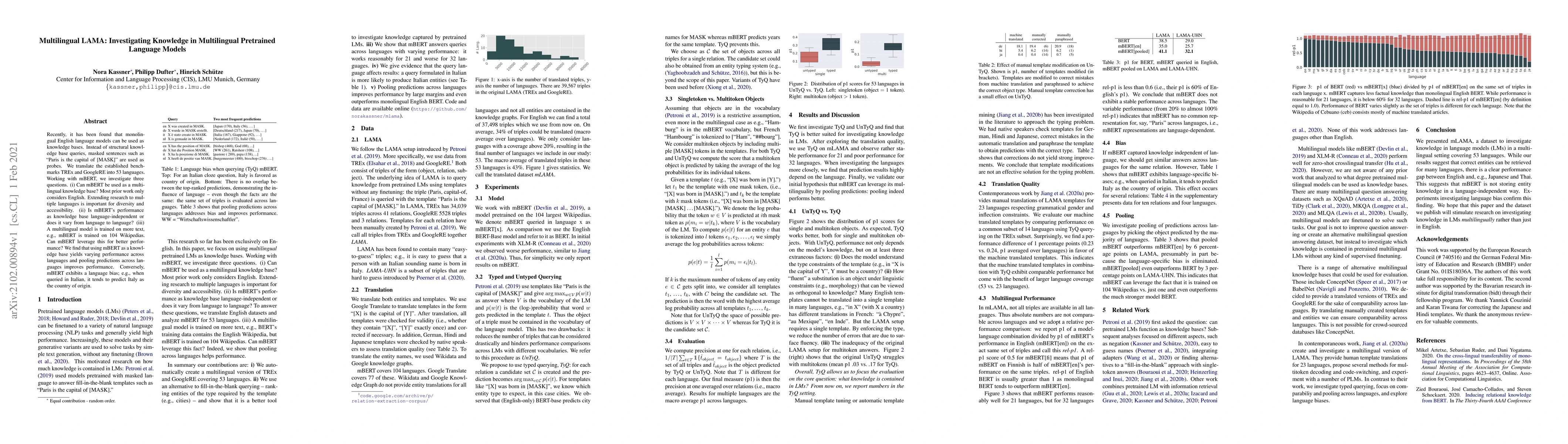 The study investigates the use of mBERT as a multilingual knowledge base across 53 languages by translating benchmarks into various languages. The research finds that mBERT's performance varies significantly across languages and pooling predictions across languages enhances overall performance, though it exhibits a language bias.