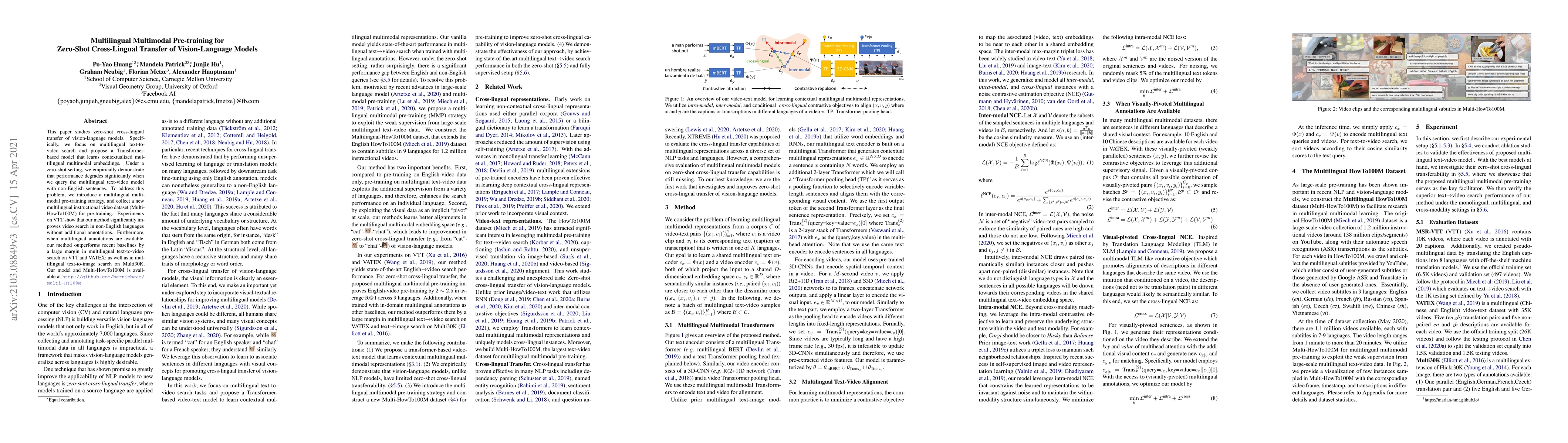 This paper proposes a multilingual multimodal pre-training strategy to enhance zero-shot cross-lingual transfer for vision-language models, specifically for multilingual text-to-video search. The new dataset, MultiHowTo100M, significantly improves non-English video search performance without additional annotations.