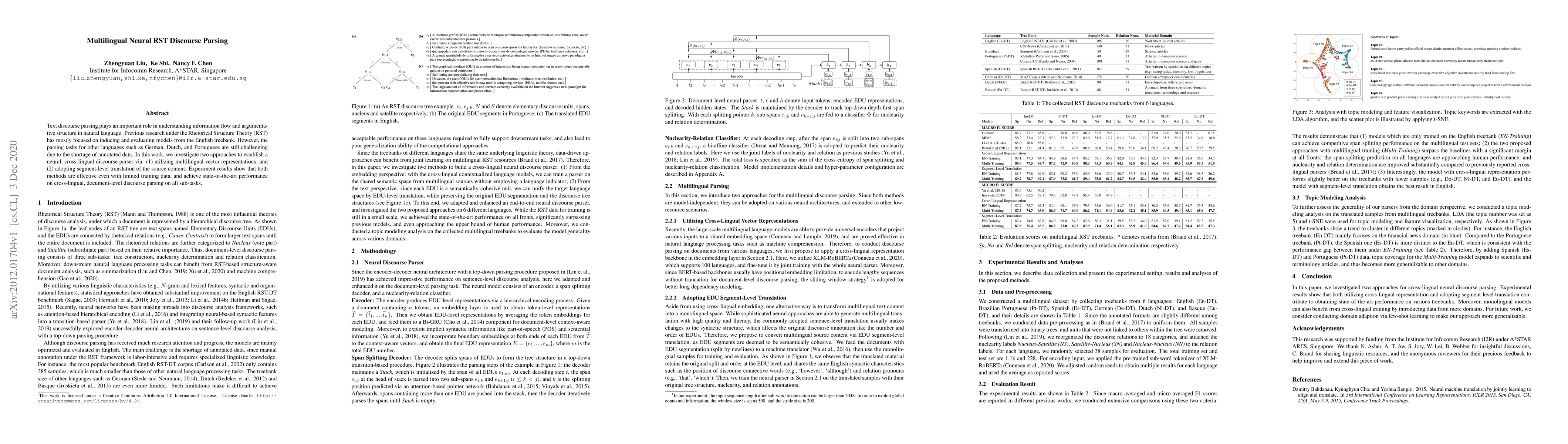 This research develops a multilingual neural discourse parser using two methods: multilingual vector representations and segment-level translation. Both approaches demonstrate effectiveness and state-of-the-art performance on cross-lingual, document-level discourse parsing tasks despite limited training data.