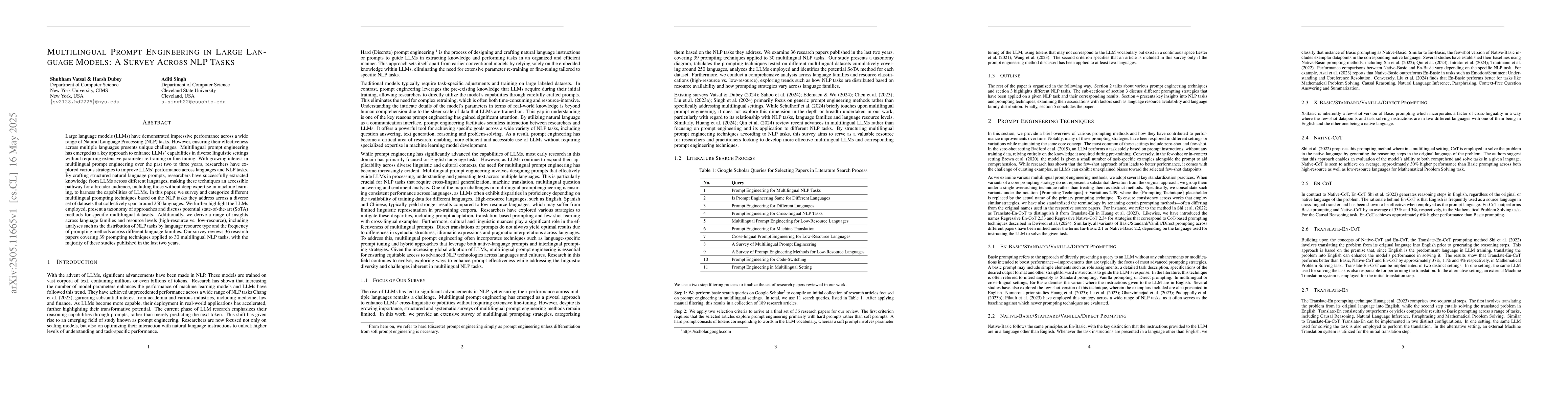 This work stands out by offering an extensive survey and analysis of multilingual prompt engineering techniques, which have gained significant attention in recent years but lacked a comprehensive overview until now.