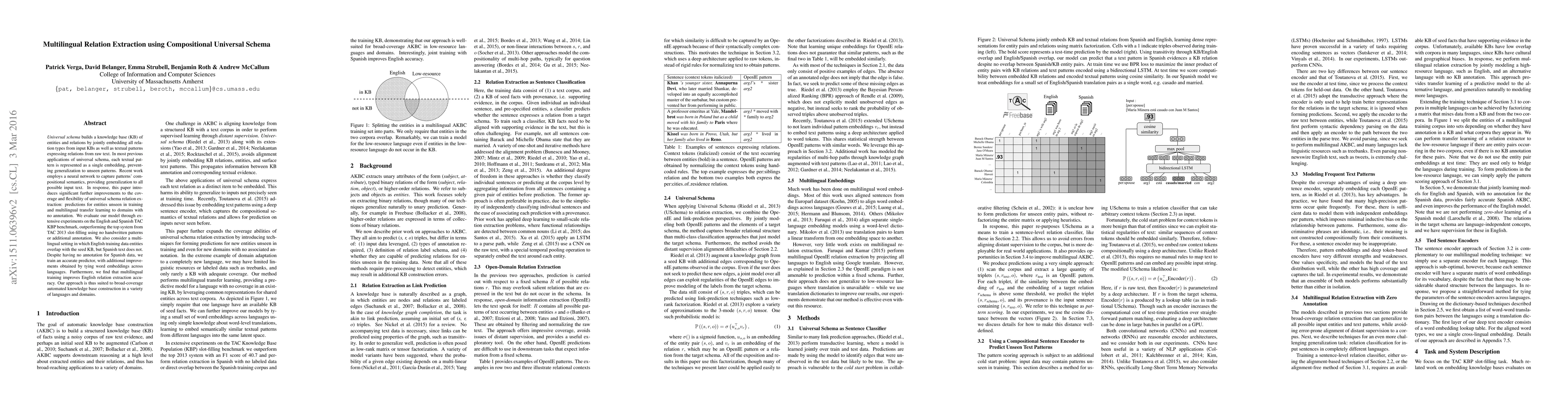 This paper introduces advanced multilingual relation extraction techniques using a compositional universal schema, achieving high performance on unseen entities and domains through flexible neural network embeddings and multilingual transfer learning, outperforming previous benchmarks on the TAC KBP dataset. The approach also demonstrates improved English relation extraction accuracy through multilingual training.