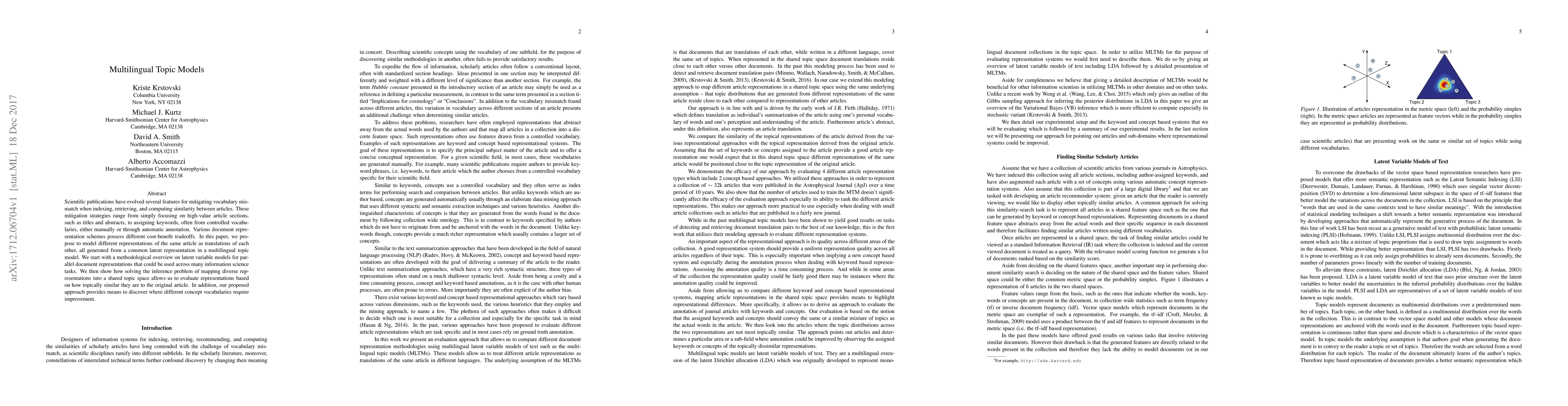 Researchers propose a new approach to handling vocabulary mismatch in articles, using multilingual topic models to translate different representations of the same article into a shared topic space. This method can help evaluate representation similarity and identify areas for improving concept vocabularies.