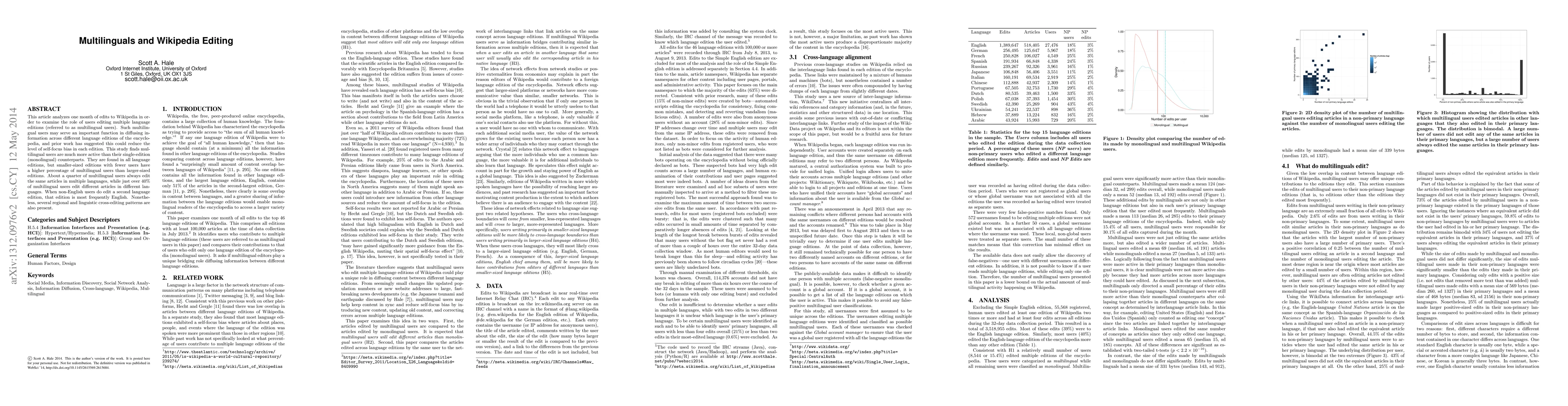 This study analyzes Wikipedia edits to assess the activity of multilingual users compared to monolingual users, finding that multilingual users are significantly more active and play a crucial role in disseminating information across different language editions, potentially reducing self-focus bias. The research highlights that multilingual users are more prevalent in smaller language editions and exhibit diverse editing patterns across languages.