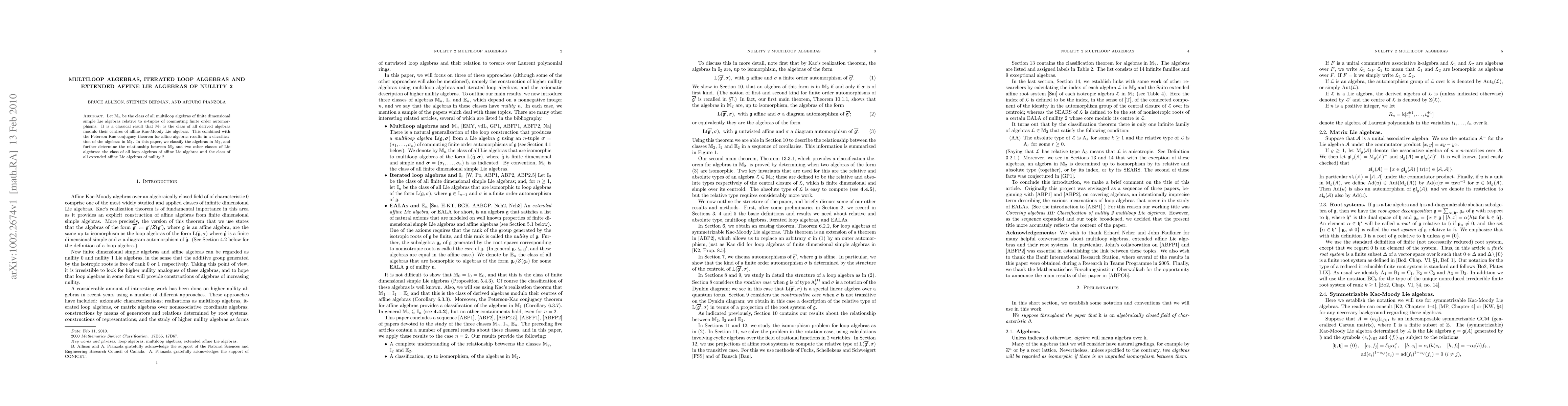 Let M_n be the class of all multiloop algebras of finite dimensional simple Lie algebras relative to n-tuples of commuting finite order automorphisms. It is a classical result that M_1 is the class of all derived algebras modulo their centres of affine Kac-Moody Lie algebras. This combined with the Peterson-Kac conjugacy theorem for affine algebras results in a classification of the algebras in M_1. In this paper, we classify the algebras in M_2, and further determine the relationship between M_2 and two other classes of Lie algebras: the class of all loop algebras of affine Lie algebras and the class of all extended affine Lie algebras of nullity 2.