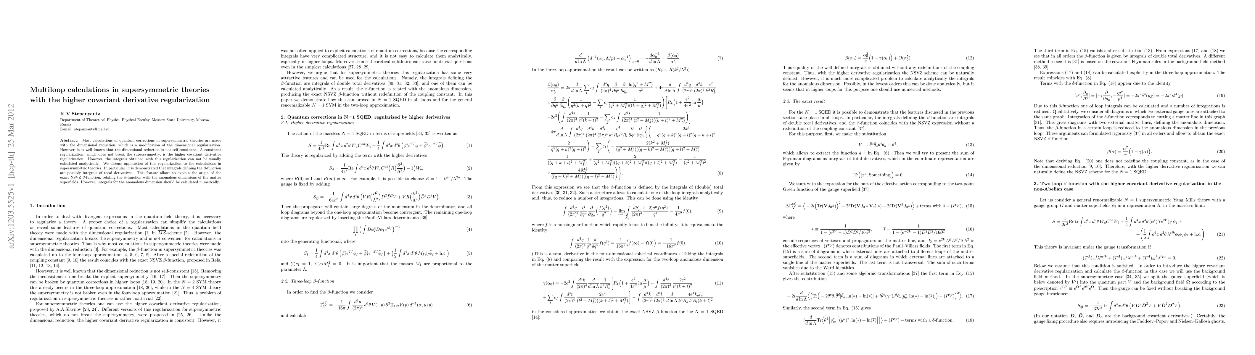 This paper explores the use of higher covariant derivative regularization in supersymmetric theories, addressing the limitations of dimensional reduction. It demonstrates that integrals defining the beta-function can be total derivatives, allowing for the derivation of the exact NSVZ beta-function, while integrals for anomalous dimensions require numerical computation.