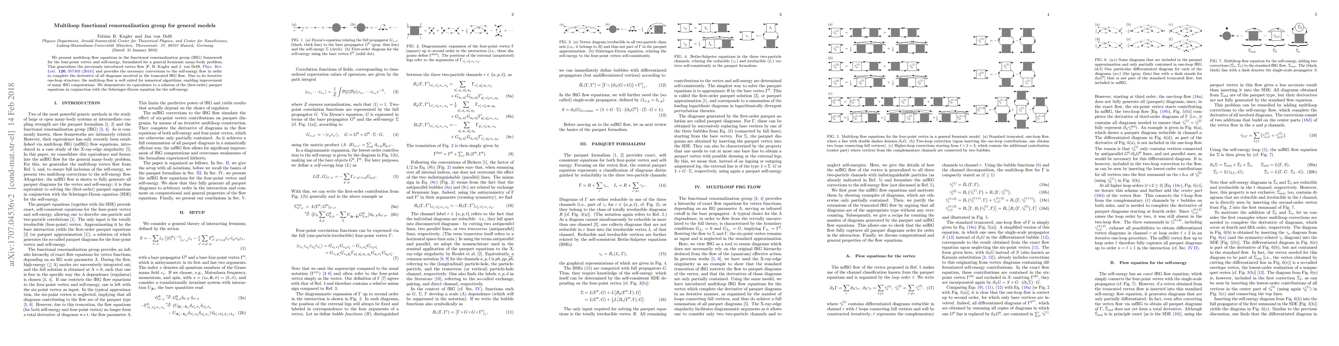 This paper introduces multiloop flow equations in the functional renormalization group (fRG) framework for a general fermionic many-body system, enhancing the four-point vertex and self-energy computations. It provides a complete derivative of all diagrams and is suitable for numerical algorithms, demonstrating equivalence to the parquet equations and Schwinger-Dyson equation.