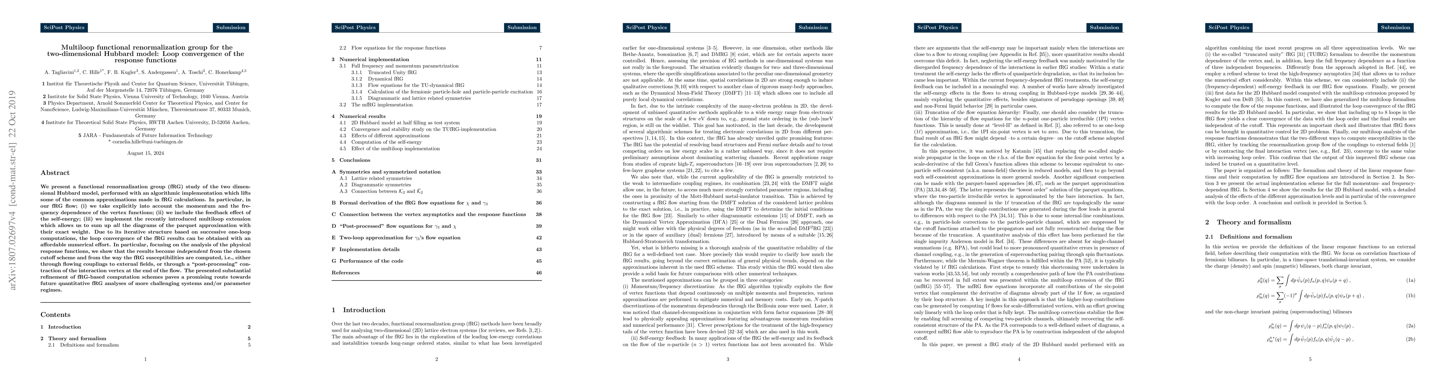 This study uses a refined multiloop functional renormalization group (fRG) approach to analyze the two-dimensional Hubbard model, focusing on the loop convergence of response functions. The methodology incorporates the full momentum and frequency dependence of vertex functions and self-energy feedback, achieving results independent of the cutoff scheme used.