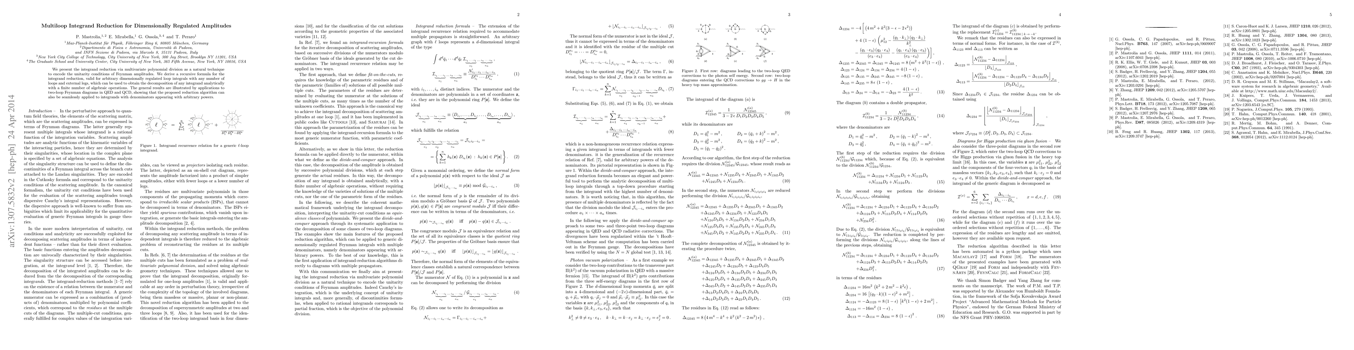 This paper introduces a new method for reducing integrands in dimensionally regulated loop integrals using multivariate polynomial division, providing a recursive formula applicable to any number of loops and external legs. The method is demonstrated through its application to two-loop Feynman diagrams in QED and QCD.