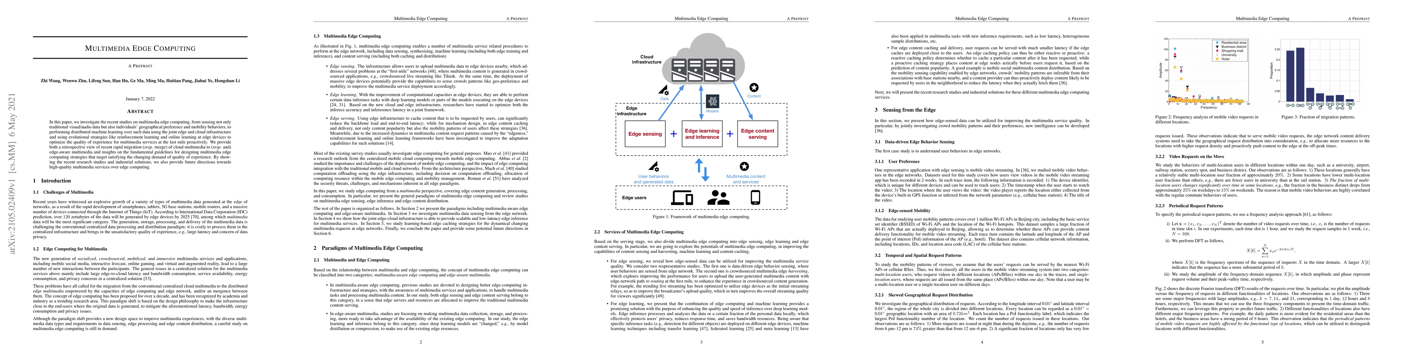 In this paper, we investigate the recent studies on multimedia edge computing, from sensing not only traditional visual/audio data but also individuals' geographical preference and mobility behaviors, to performing distributed machine learning over such data using the joint edge and cloud infrastructure and using evolutional strategies like reinforcement learning and online learning at edge devices to optimize the quality of experience for multimedia services at the last mile proactively. We provide both a retrospective view of recent rapid migration (resp. merge) of cloud multimedia to (resp. and) edge-aware multimedia and insights on the fundamental guidelines for designing multimedia edge computing strategies that target satisfying the changing demand of quality of experience. By showing the recent research studies and industrial solutions, we also provide future directions towards high-quality multimedia services over edge computing.