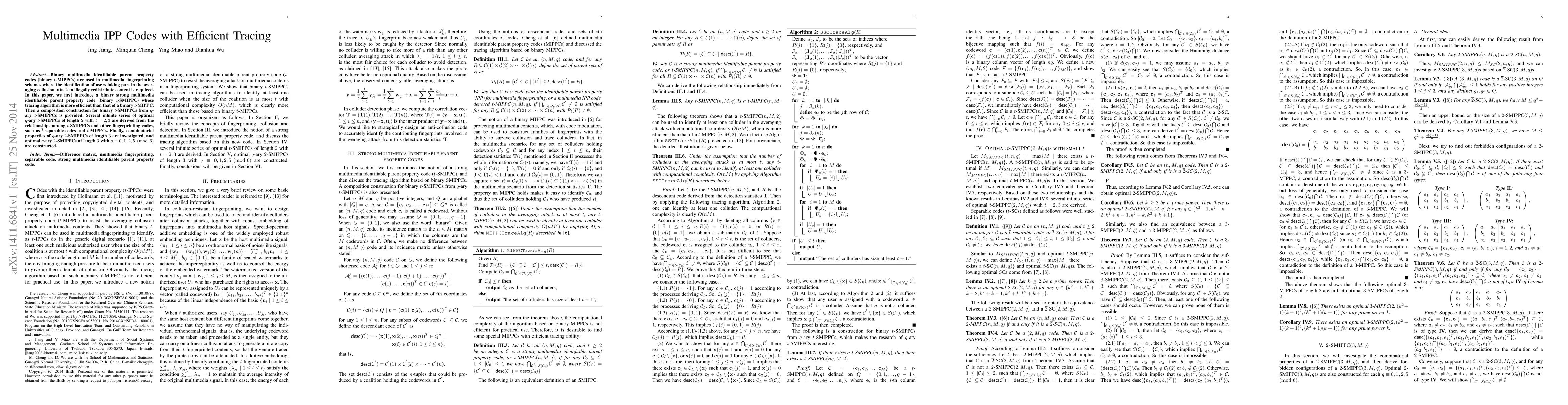 Binary multimedia identifiable parent property codes (binary $t$-MIPPCs) are used in multimedia fingerprinting schemes where the identification of users taking part in the averaging collusion attack to illegally redistribute content is required. In this paper, we first introduce a binary strong multimedia identifiable parent property code (binary $t$-SMIPPC) whose tracing algorithm is more efficient than that of a binary $t$-MIPPC. Then a composition construction for binary $t$-SMIPPCs from $q$-ary $t$-SMIPPCs is provided. Several infinite series of optimal $q$-ary $t$-SMIPPCs of length $2$ with $t = 2, 3$ are derived from the relationships among $t$-SMIPPCs and other fingerprinting codes, such as $\overline{t}$-separable codes and $t$-MIPPCs. Finally, combinatorial properties of $q$-ary $2$-SMIPPCs of length $3$ are investigated, and optimal $q$-ary $2$-SMIPPCs of length $3$ with $q \equiv 0, 1, 2, 5 \pmod 6$ are constructed.