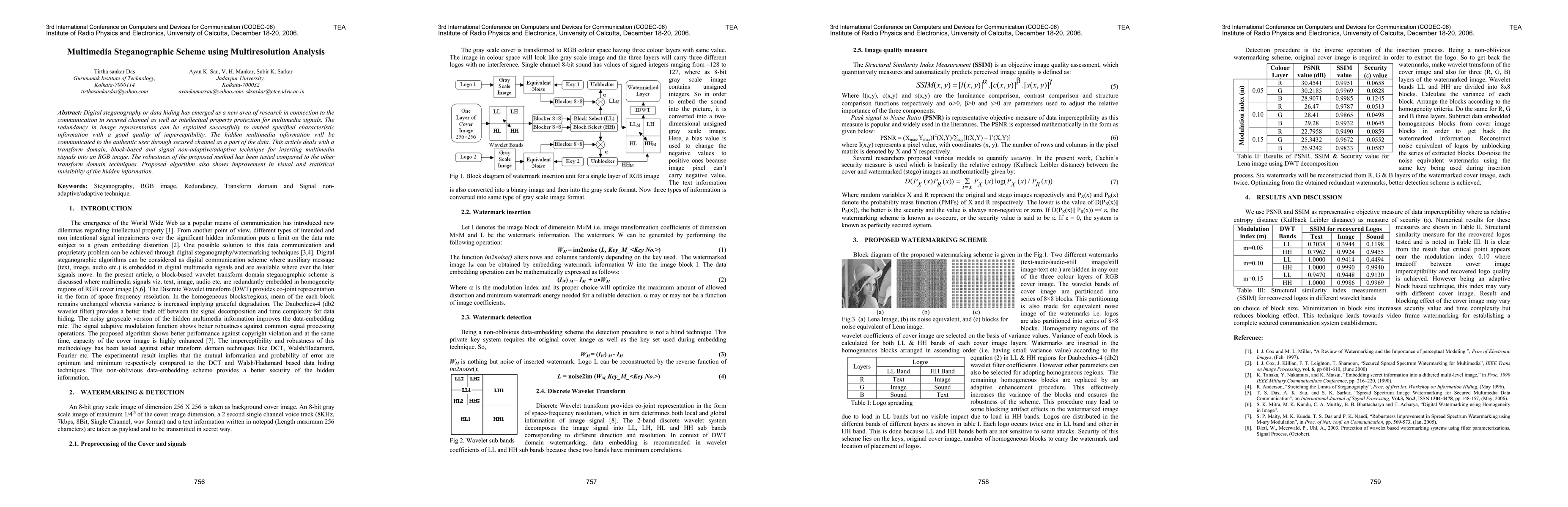 Digital steganography or data hiding has emerged as a new area of research in connection to the communication in secured channel as well as intellectual property protection for multimedia signals. The redundancy in image representation can be exploited successfully to embed specified characteristic information with a good quality of imperceptibility. The hidden multimedia information will be communicated to the authentic user through secured channel as a part of the data. This article deals with a transform domain, block-based and signal non-adaptive/adaptive technique for inserting multimedia signals into an RGB image. The robustness of the proposed method has been tested compared to the other transform domain techniques. Proposed algorithm also shows improvement in visual and statistical invisibility of the hidden information.