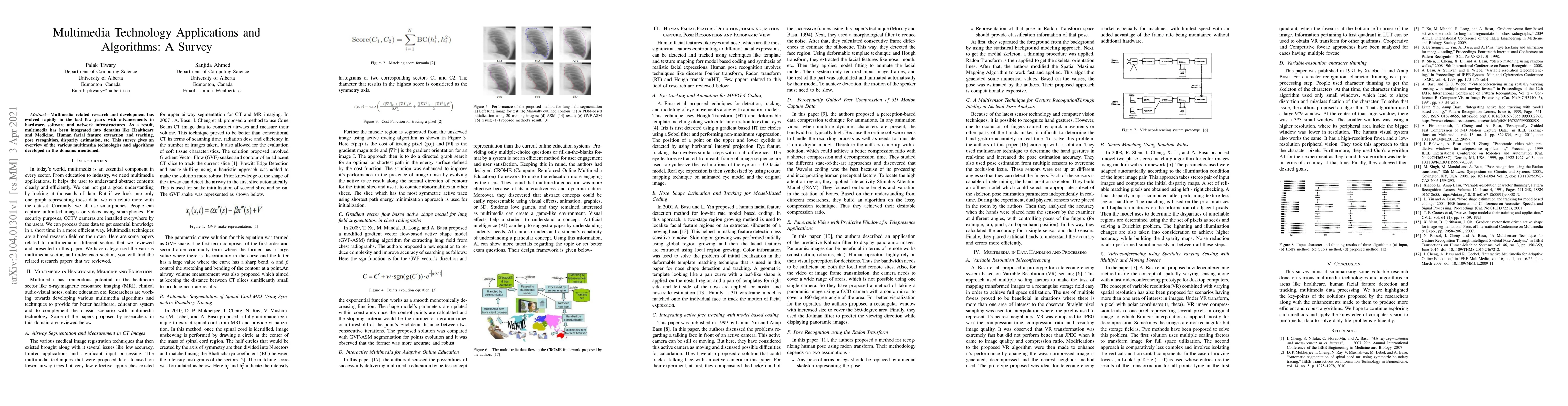 Multimedia related research and development has evolved rapidly in the last few years with advancements in hardware, software and network infrastructures. As a result, multimedia has been integrated into domains like Healthcare and Medicine, Human facial feature extraction and tracking, pose recognition, disparity estimation, etc. This survey gives an overview of the various multimedia technologies and algorithms developed in the domains mentioned.