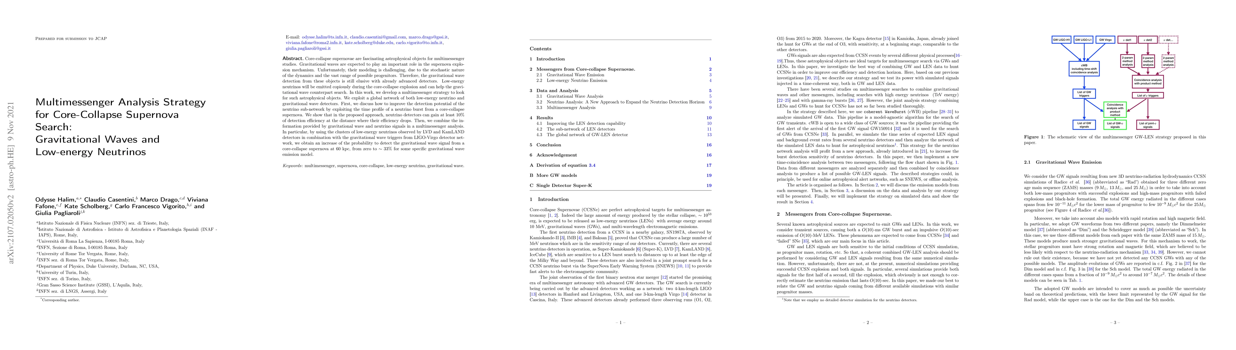 This paper develops a multimessenger strategy to enhance the detection of core-collapse supernovae using both gravitational waves and low-energy neutrinos. It improves neutrino detection efficiency and combines gravitational wave and neutrino data to significantly increase the probability of detecting gravitational waves from such events.