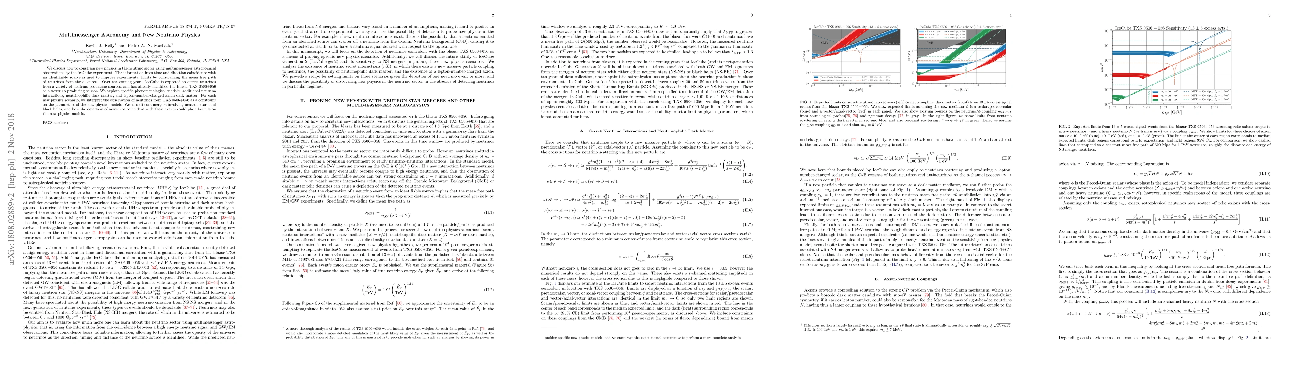 Researchers explore how multimessenger astronomy can constrain new physics in neutrino sector using IceCube experiment data, focusing on models of additional interactions, dark matter, and axion dark matter.