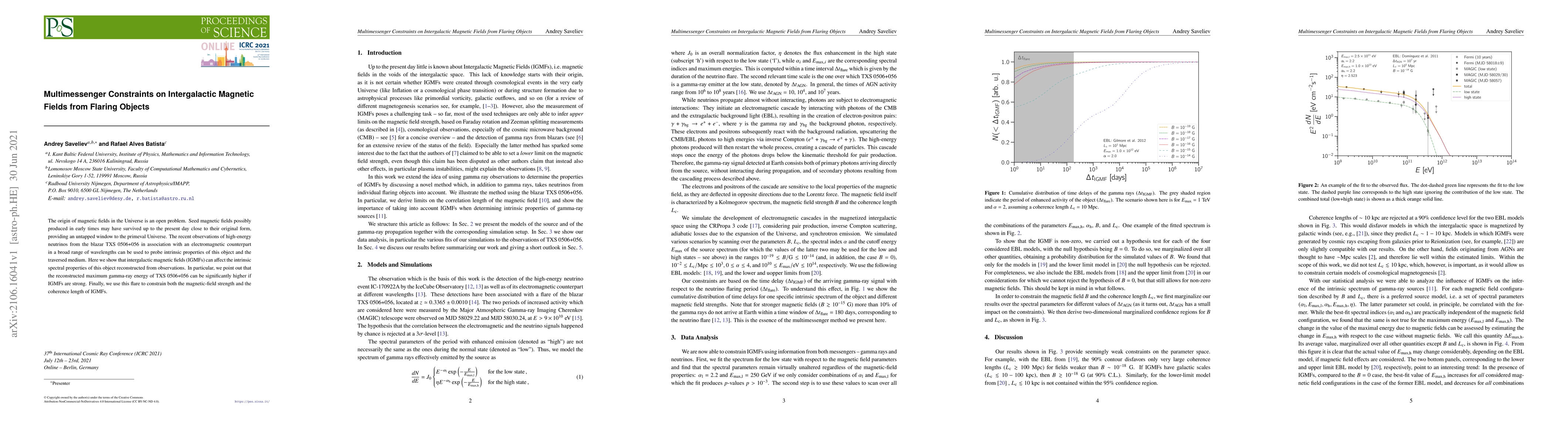 This paper investigates intergalactic magnetic fields (IGMFs) using observations from the blazar TXS 0506+056, revealing that strong IGMFs can influence the intrinsic spectral properties of the object. The study constrains the strength and coherence length of IGMFs based on the reconstructed maximum gamma-ray energy from the flare.