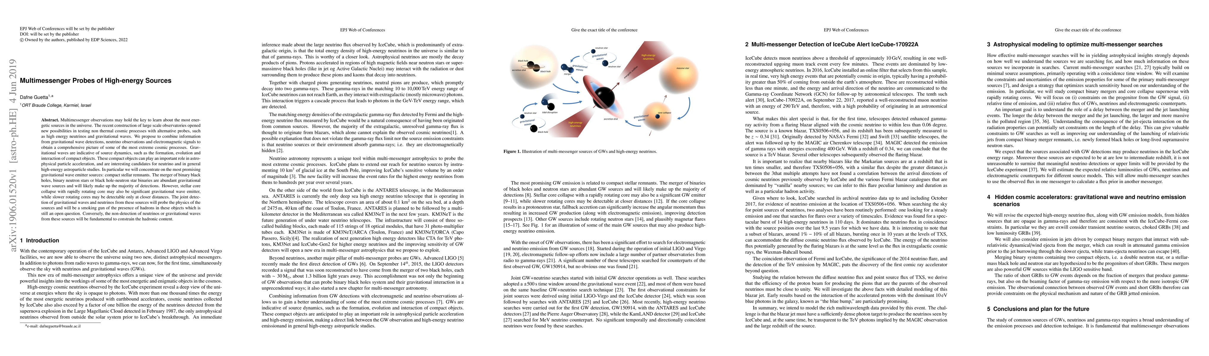Multimessenger observations may hold the key to learn about the most energetic sources in the universe. The recent construction of large scale observatories opened new possibilities in testing non thermal cosmic processes with alternative probes, such as high energy neutrinos and gravitational waves. We propose to combine information from gravitational wave detections, neutrino observations and electromagnetic signals to obtain a comprehensive picture of some of the most extreme cosmic processes. Gravitational waves are indicative of source dynamics, such as the formation, evolution and interaction of compact objects. These compact objects can play an important role in astrophysical particle acceleration, and are interesting candidates for neutrino and in general high-energy astroparticle studies. In particular we will concentrate on the most promising gravitational wave emitter sources: compact stellar remnants. The merger of binary black holes, binary neutron stars or black hole-neutron star binaries are abundant gravitational wave sources and will likely make up the majority of detections. However, stellar core collapse with rapidly rotating core may also be significant gravitational wave emitter, while slower rotating cores may be detectable only at closer distances. The joint detection of gravitational waves and neutrinos from these sources will probe the physics of the sources and will be a smoking gun of the presence of hadrons in these objects which is still an open question. Conversely, the non-detection of neutrinos or gravitational waves from these sources will be fundamental to constrain the hadronic content.