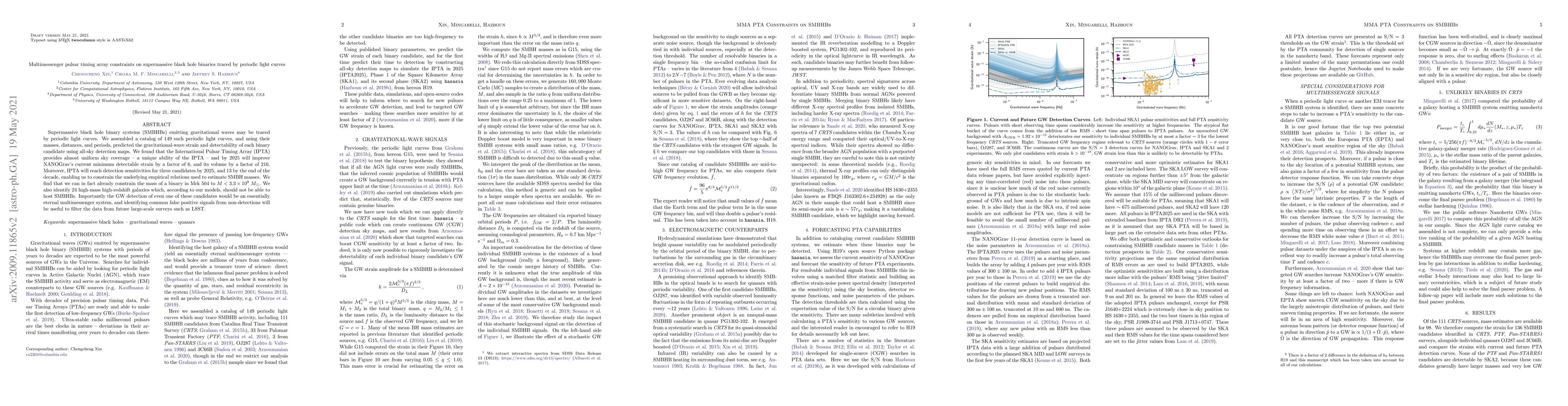The study identifies 149 periodic light curve candidates for supermassive black hole binaries (SMBHBs), predicting their gravitational-wave strain and detectability using IPTA maps. By 2025, IPTA will significantly enhance detection capabilities, identifying 13 SMBHBs and constraining SMBH mass estimation. The research also pinpoints 24 high-mass, high-redshift galaxies unlikely to host SMBHBs, emphasizing the importance of multimessenger detection for future surveys like LSST.