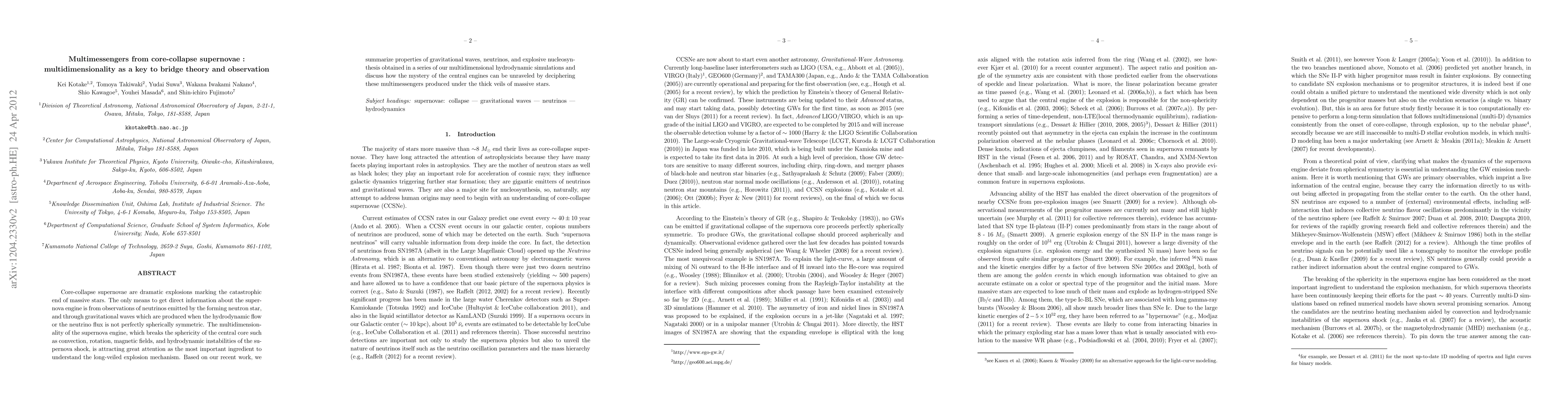 Core-collapse supernovae are dramatic explosions marking the catastrophic end of massive stars. The only means to get direct information about the supernova engine is from observations of neutrinos emitted by the forming neutron star, and through gravitational waves which are produced when the hydrodynamic flow or the neutrino flux is not perfectly spherically symmetric. The multidimensionality of the supernova engine, which breaks the sphericity of the central core such as convection, rotation, magnetic fields, and hydrodynamic instabilities of the supernova shock, is attracting great attention as the most important ingredient to understand the long-veiled explosion mechanism. Based on our recent work, we summarize properties of gravitational waves, neutrinos, and explosive nucleosynthesis obtained in a series of our multidimensional hydrodynamic simulations and discuss how the mystery of the central engines can be unraveled by deciphering these multimessengers produced under the thick veils of massive stars.