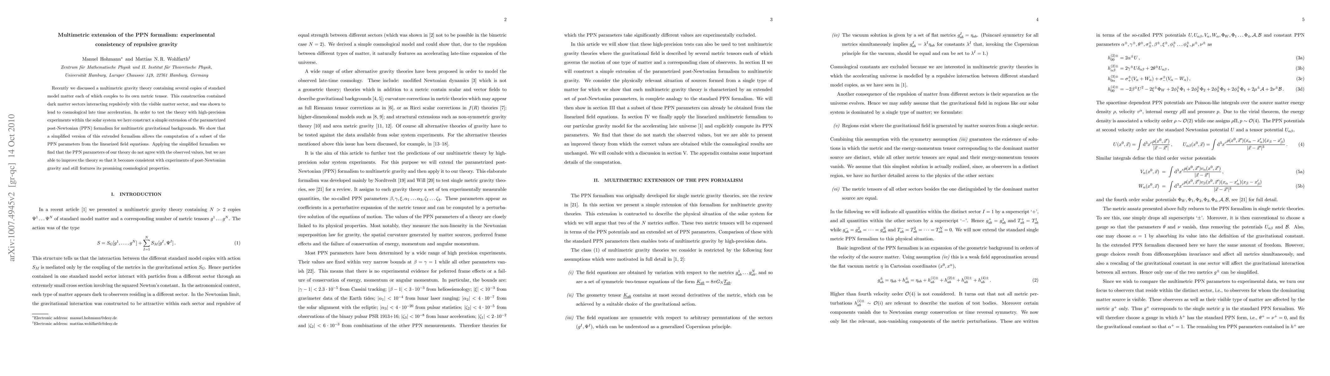 Recently we discussed a multimetric gravity theory containing several copies of standard model matter each of which couples to its own metric tensor. This construction contained dark matter sectors interacting repulsively with the visible matter sector, and was shown to lead to cosmological late-time acceleration. In order to test the theory with high-precision experiments within the solar system we here construct a simple extension of the parametrized post-Newtonian (PPN) formalism for multimetric gravitational backgrounds. We show that a simplified version of this extended formalism allows the computation of a subset of the PPN parameters from the linearized field equations. Applying the simplified formalism we find that the PPN parameters of our theory do not agree with the observed values, but we are able to improve the theory so that it becomes consistent with experiments of post-Newtonian gravity and still features its promising cosmological properties.