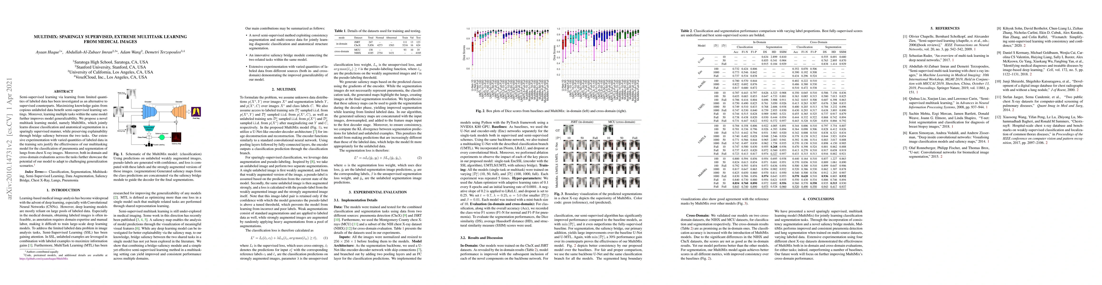MultiMix is a novel multitasking learning model that jointly performs disease classification and anatomical segmentation from chest X-ray images with minimal labeled data. The model demonstrates effectiveness and adaptability across different generalization scenarios through extensive experimentation and evaluations.