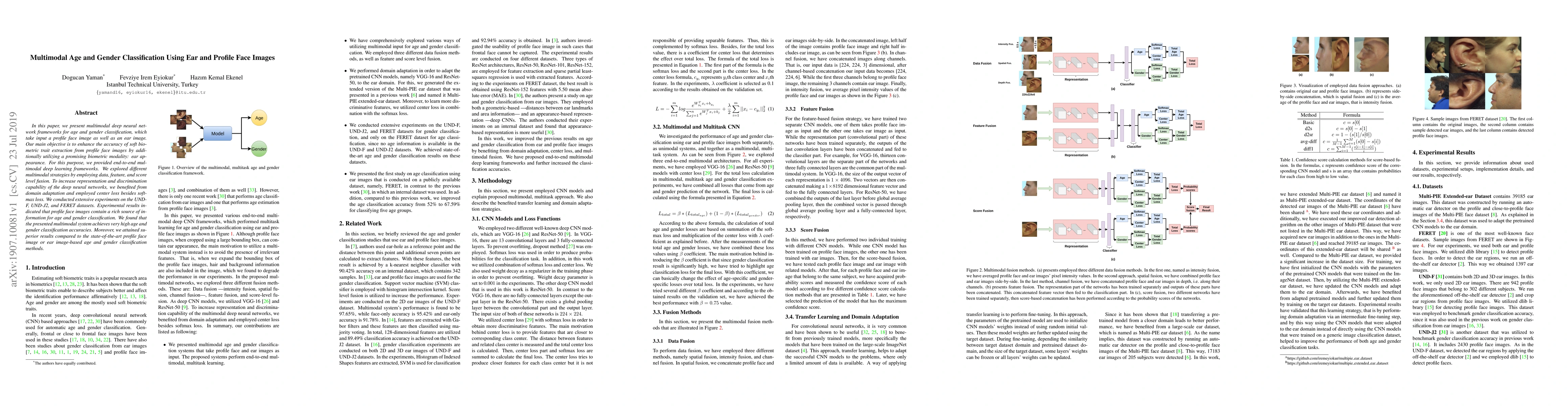 This paper proposes multimodal deep neural networks for age and gender classification using both profile face and ear images, achieving high accuracy through data, feature, and score level fusion, domain adaptation, and center loss. The results show superior performance compared to existing methods.