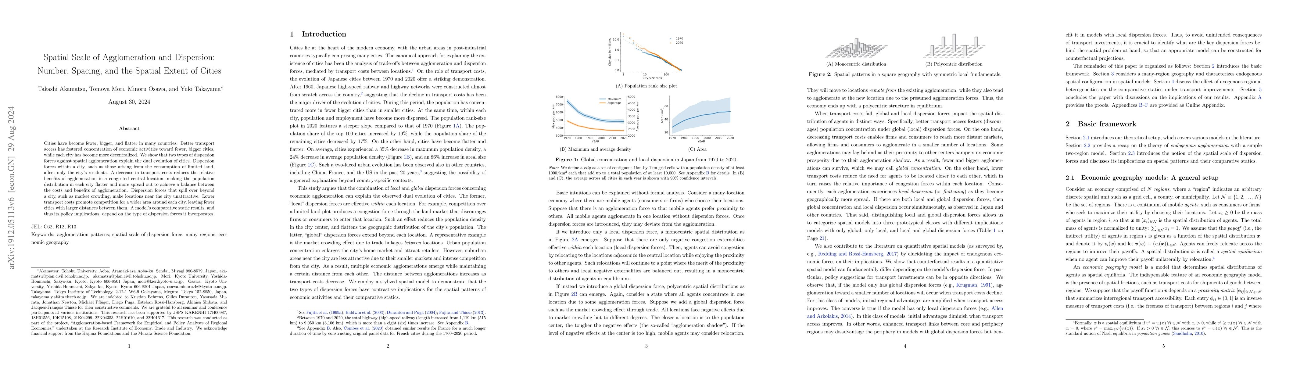 This paper explores the endogenous formation of multimodal agglomerations in economic geography, showing that global dispersion forces, like competition, lead to multiple city formations, while local forces, such as land scarcity, result in unimodal patterns. The study categorizes models based on their dispersion forces to aid in selecting appropriate frameworks for different research objectives.