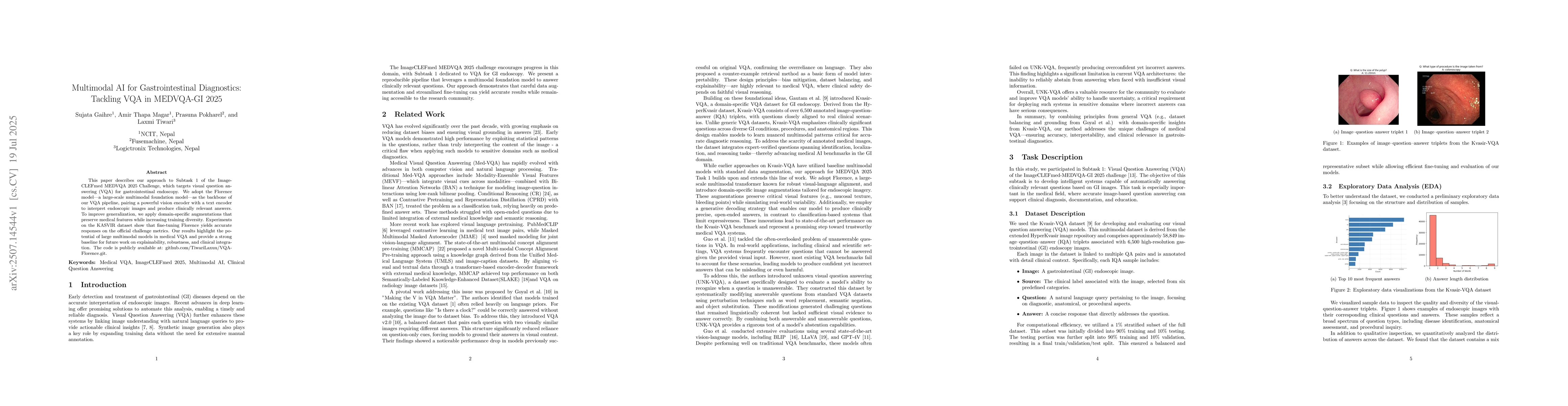 This paper describes our approach to Subtask 1 of the ImageCLEFmed MEDVQA 2025 Challenge, which targets visual question answering (VQA) for gastrointestinal endoscopy. We adopt the Florence model-a large-scale multimodal foundation model-as the backbone of our VQA pipeline, pairing a powerful vision encoder with a text encoder to interpret endoscopic images and produce clinically relevant answers. To improve generalization, we apply domain-specific augmentations that preserve medical features while increasing training diversity. Experiments on the KASVIR dataset show that fine-tuning Florence yields accurate responses on the official challenge metrics. Our results highlight the potential of large multimodal models in medical VQA and provide a strong baseline for future work on explainability, robustness, and clinical integration. The code is publicly available at: https://github.com/TiwariLaxuu/VQA-Florence.git