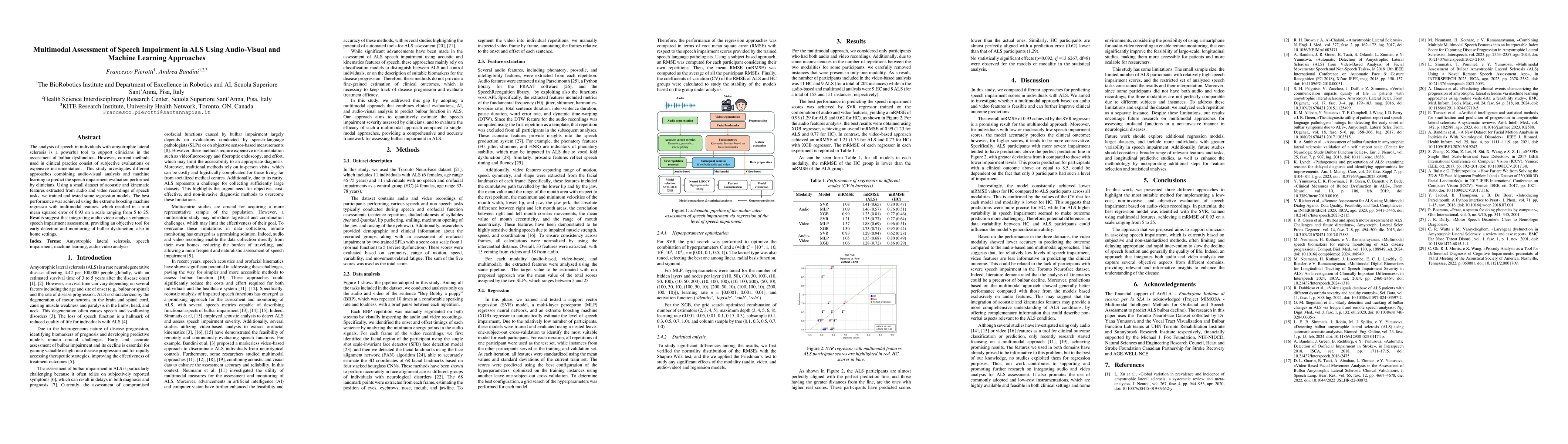 The main technical contribution is the development and validation of a multimodal approach combining audio-visual analysis and machine learning for speech impairment assessment in ALS.