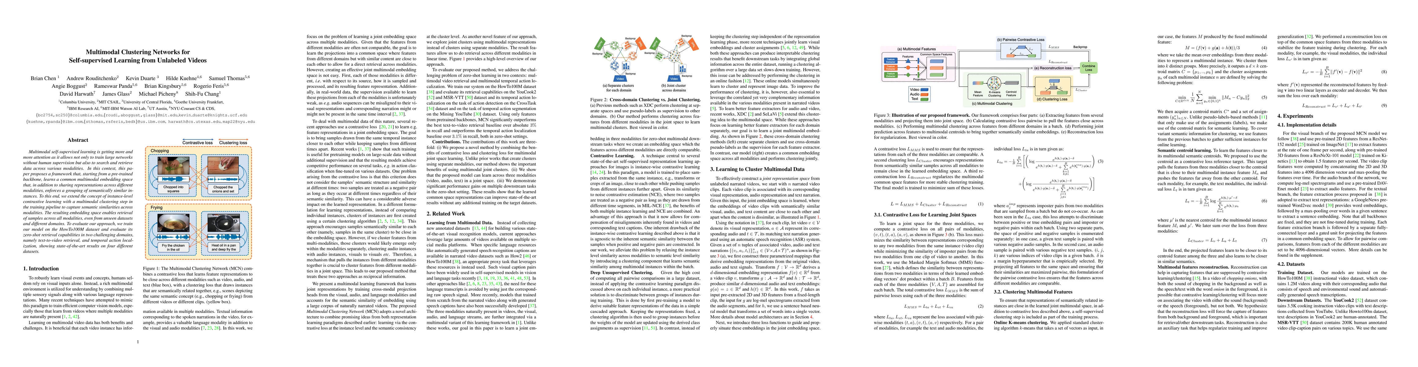 A new self-supervised learning framework uses multimodal clustering to learn a common space that captures both shared representations and semantic similarities across different modalities, achieving state-of-the-art results in various retrieval tasks.