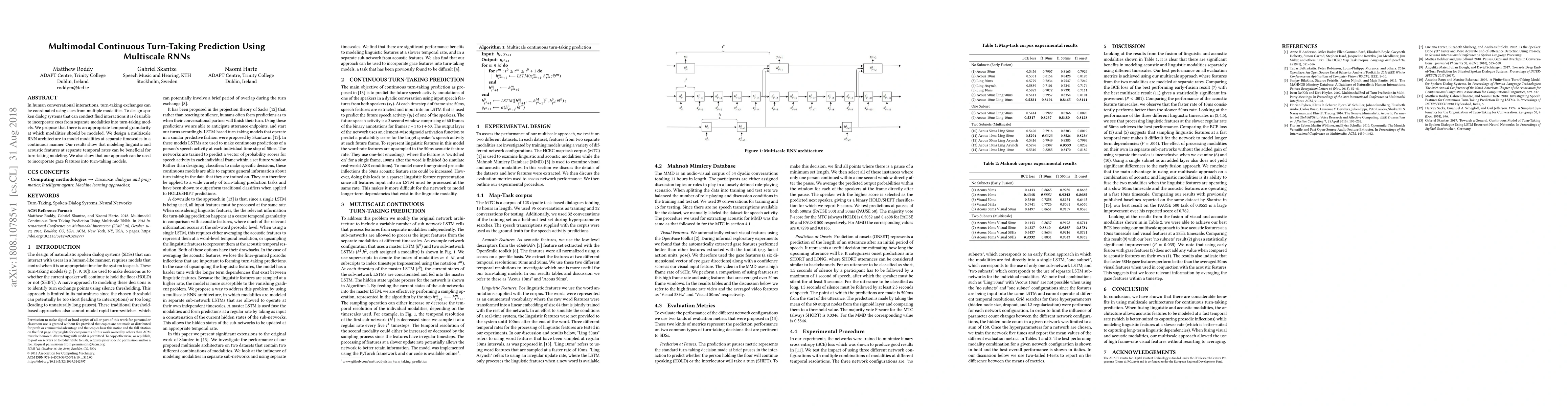 This paper proposes a multiscale RNN architecture for predicting turn-taking in spoken dialog systems by modeling linguistic, acoustic, and gaze features at different temporal granularities. The results demonstrate improved turn-taking prediction by incorporating these multimodal cues.