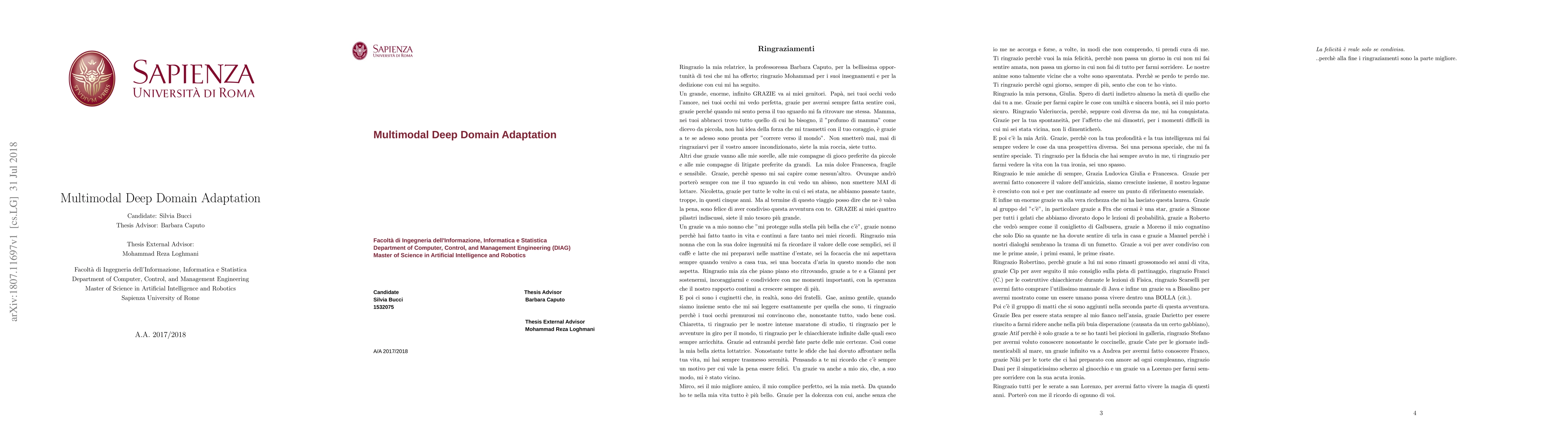 Typically a classifier trained on a given dataset (source domain) does not performs well if it is tested on data acquired in a different setting (target domain). This is the problem that domain adaptation (DA) tries to overcome and, while it is a well explored topic in computer vision, it is largely ignored in robotic vision where usually visual classification methods are trained and tested in the same domain. Robots should be able to deal with unknown environments, recognize objects and use them in the correct way, so it is important to explore the domain adaptation scenario also in this context. The goal of the project is to define a benchmark and a protocol for multi-modal domain adaptation that is valuable for the robot vision community. With this purpose some of the state-of-the-art DA methods are selected: Deep Adaptation Network (DAN), Domain Adversarial Training of Neural Network (DANN), Automatic Domain Alignment Layers (AutoDIAL) and Adversarial Discriminative Domain Adaptation (ADDA). Evaluations have been done using different data types: RGB only, depth only and RGB-D over the following datasets, designed for the robotic community: RGB-D Object Dataset (ROD), Web Object Dataset (WOD), Autonomous Robot Indoor Dataset (ARID), Big Berkeley Instance Recognition Dataset (BigBIRD) and Active Vision Dataset. Although progresses have been made on the formulation of effective adaptation algorithms and more realistic object datasets are available, the results obtained show that, training a sufficiently good object classifier, especially in the domain adaptation scenario, is still an unsolved problem. Also the best way to combine depth with RGB informations to improve the performance is a point that needs to be investigated more.