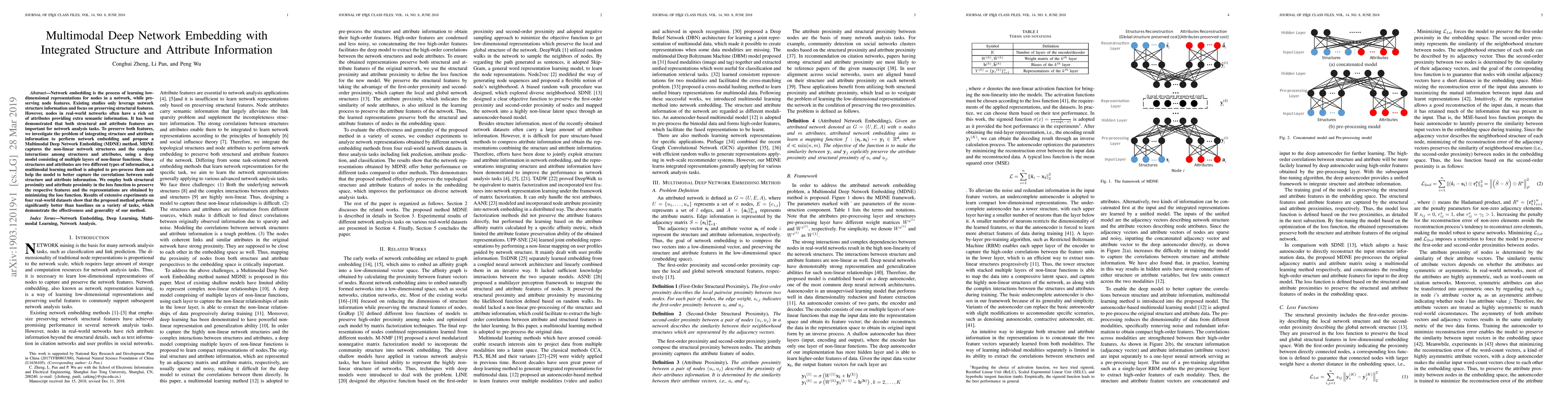 The paper proposes a Multimodal Deep Network Embedding (MDNE) method to integrate both structural and attribute information for network embedding, achieving better performance than baselines on various tasks. The method uses a deep model to capture non-linear structures and interactions, employing a multimodal learning approach to preprocess different types of information.