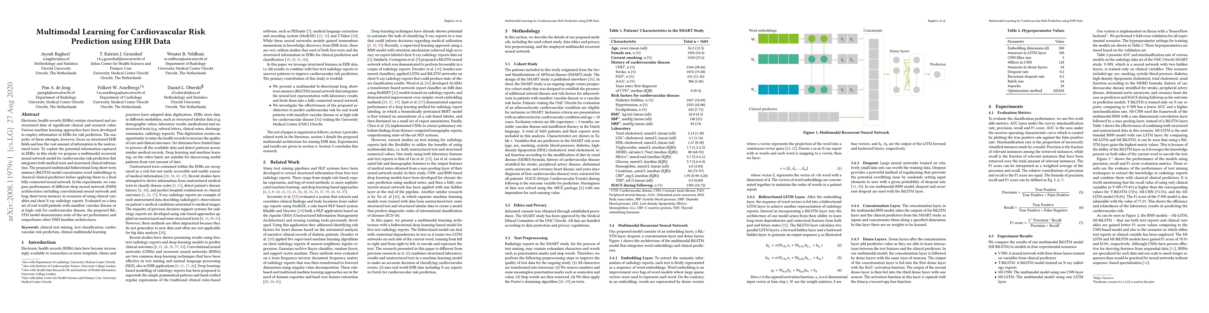 This study introduces a multimodal recurrent neural network model that leverages both structured clinical data and unstructured text from electronic health records to predict cardiovascular risk. The proposed multimodal bidirectional LSTM model outperforms other deep neural network architectures in risk prediction, achieving state-of-the-art results.