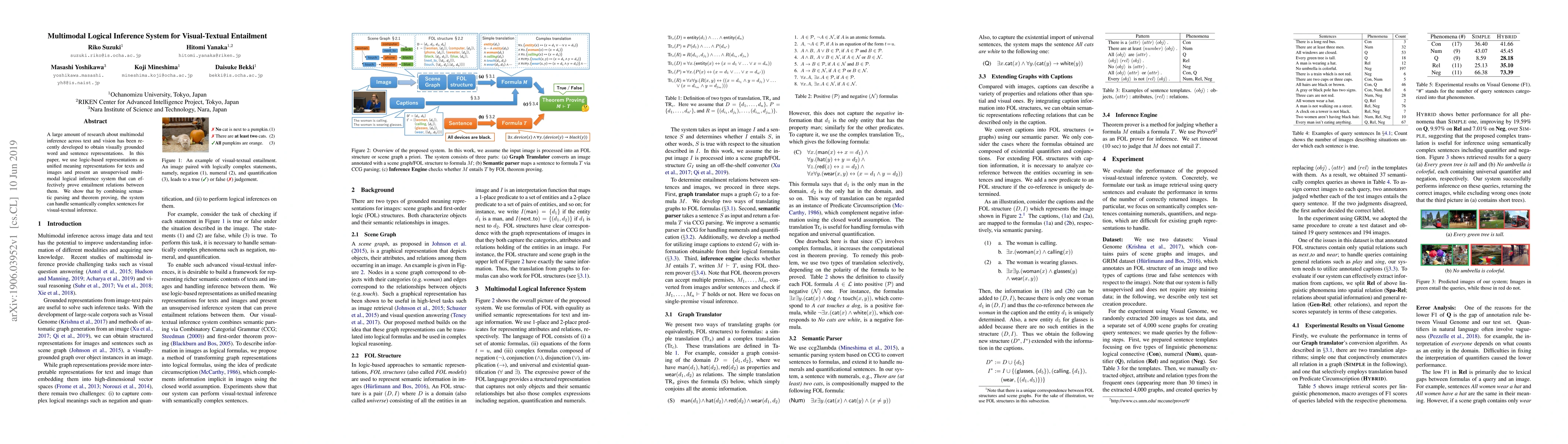 The paper proposes a multimodal logical inference system for visual-textual entailment, utilizing logic-based representations for texts and images, and combining semantic parsing with theorem proving to handle complex sentences.