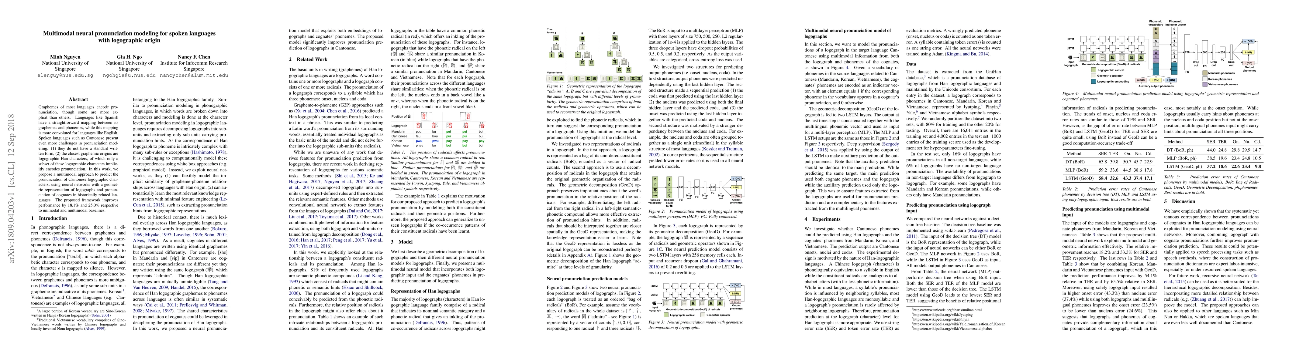 This paper proposes a multimodal neural model to predict the pronunciation of Cantonese logographic characters, leveraging geometric representations of logographs and cognate pronunciations in related languages. The approach significantly outperforms both unimodal and multimodal baselines, improving performance by 18.1% and 25.0% respectively.