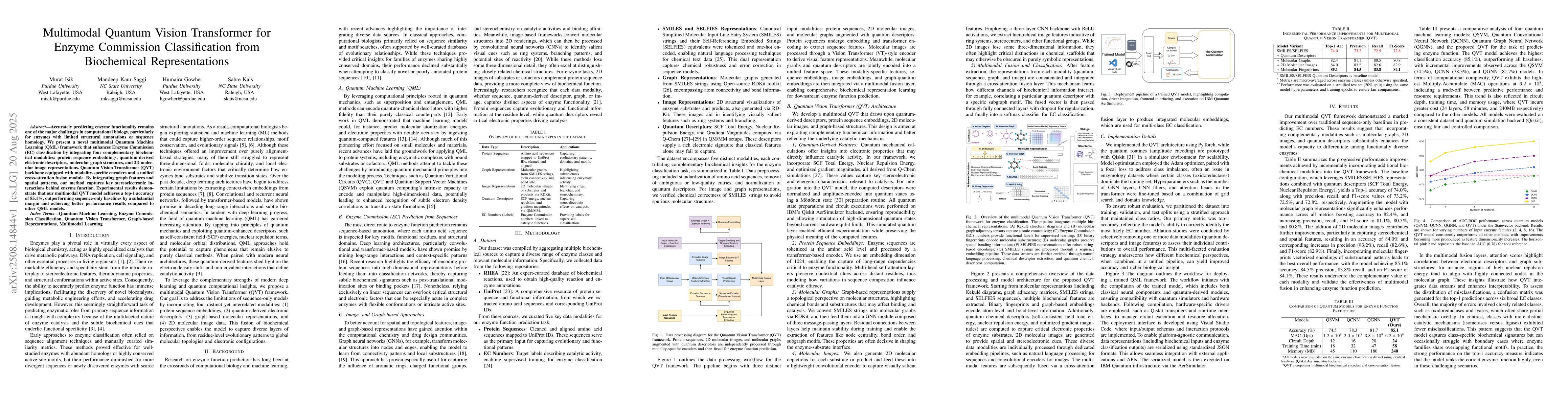 The research presents a multimodal Quantum Vision Transformer (QVT) framework for enzyme commission classification, integrating protein sequence embeddings, quantum-derived electronic descriptors, molecular graph structures, and 2D molecular image representations.