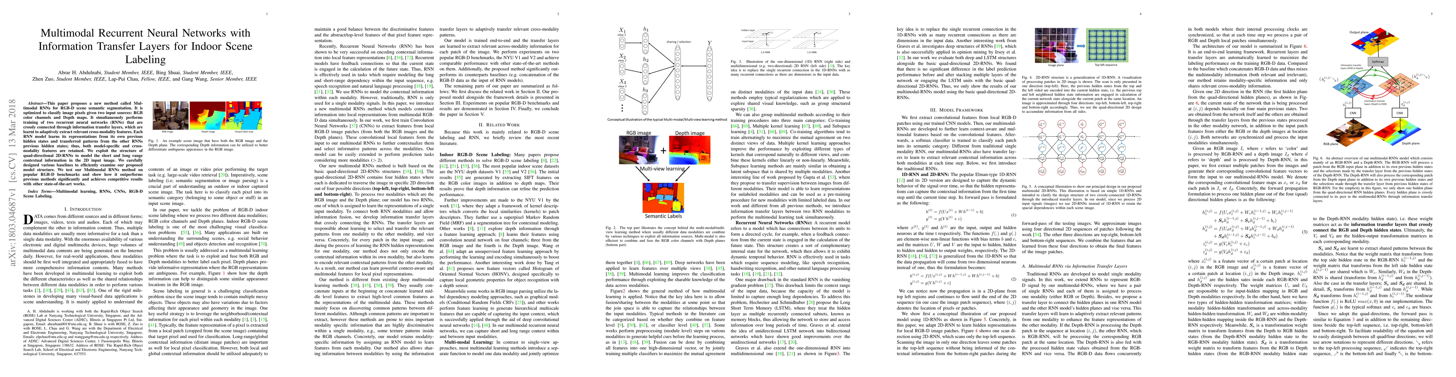 A new method called Multimodal RNNs is proposed for RGB-D scene semantic segmentation, outperforming previous methods significantly and achieving competitive results with state-of-the-art works.