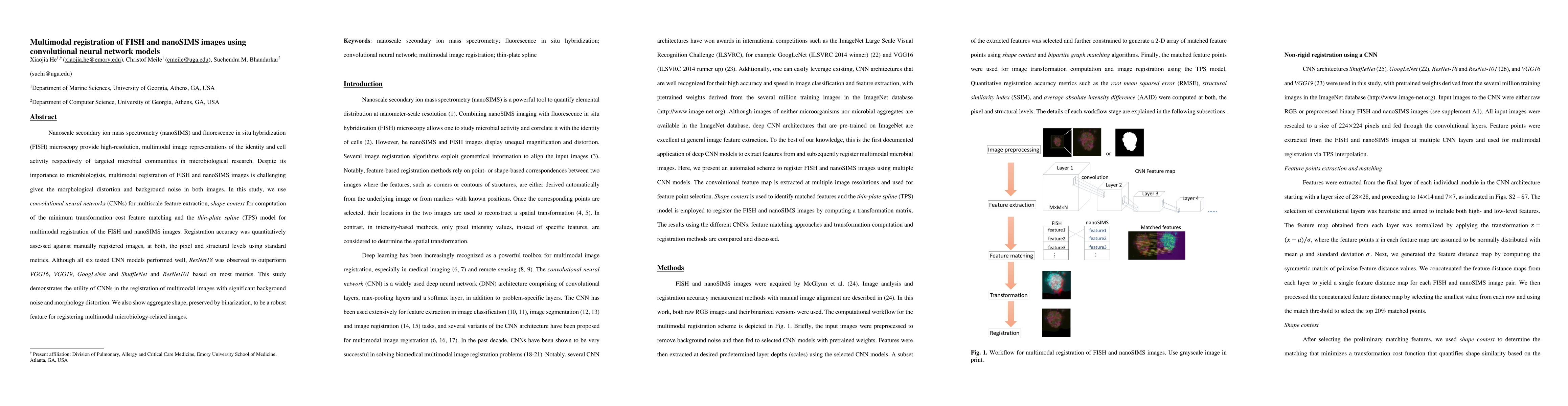 Researchers developed a method to register FISH and nanoSIMS images using convolutional neural networks, outperforming other models in accuracy, particularly for microbiological research with noisy and distorted images.
