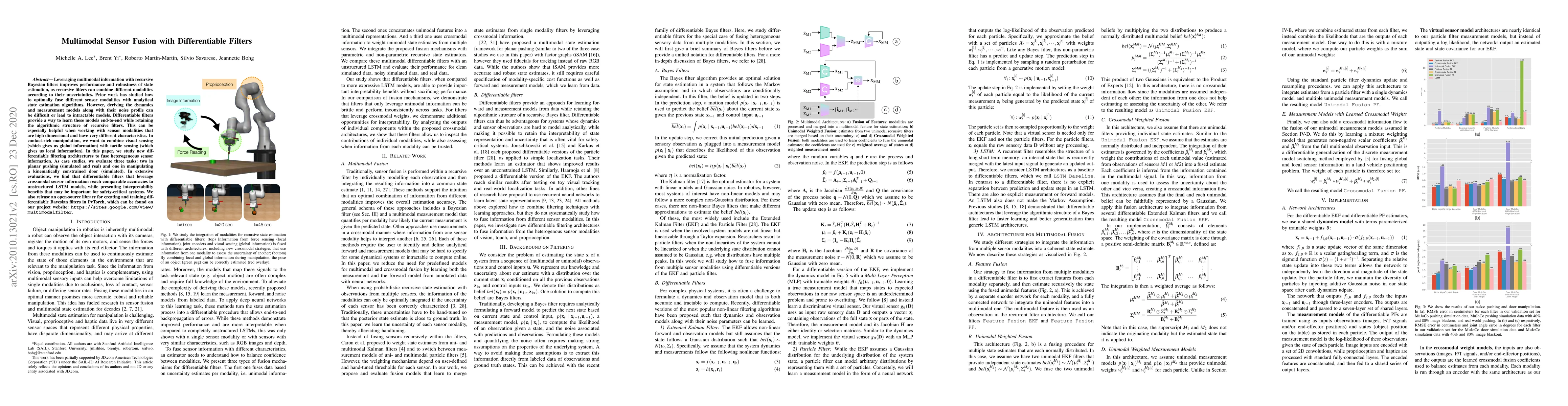 This paper proposes differentiable filters to optimally fuse multimodal sensor data, demonstrating their effectiveness in contact-rich manipulation tasks. The approach achieves comparable accuracy to unstructured LSTM models while maintaining interpretability, crucial for safety-critical applications.