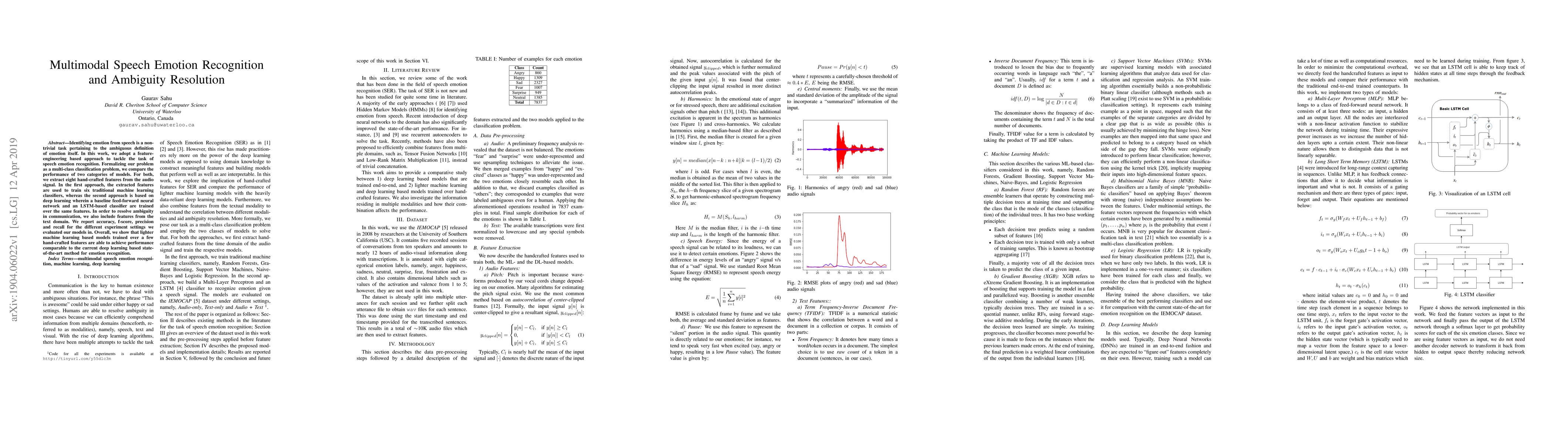 This paper explores multimodal speech emotion recognition using both traditional machine learning and deep learning approaches. It demonstrates that simpler machine learning models with hand-crafted features can achieve comparable results to more complex deep learning methods, highlighting the importance of feature engineering in resolving ambiguities in emotion recognition.
